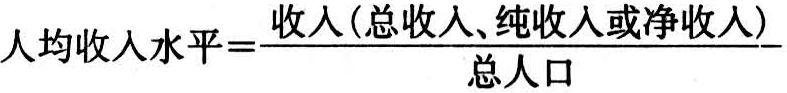 人均收入水平:工程项目区收入(可为总收入、纯收入、净收入……)与总人口之比。