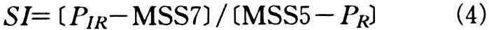 式中 PIR、PR分别是植被覆盖率为100%时红外谱段和红谱段的光谱反射率,MSS7、MSS5分别为陆地卫星多谱段扫描仪中第7波段(0.80~1.10微米)、第5波段(0.62~0.70微米)的光谱亮度值。