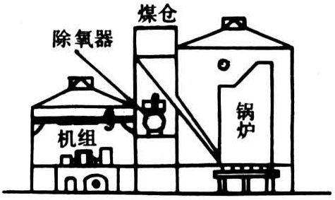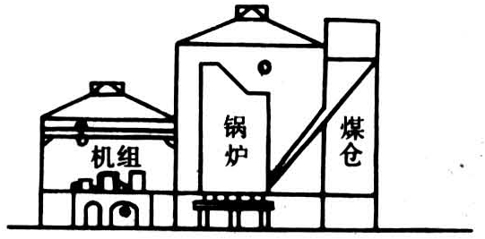 厂房布置要符合电力生产工艺流程、管线紧凑合理、维护检修方便、符合防火和卫生要求等。厂房布置有两种基本方式:①外煤仓式(图2),锅炉房紧靠汽机房,煤仓布置在锅炉外侧,其特点是有利于安装、运行和检修,通风采光条件好;②合并煤仓式(图3),在锅炉房和汽机房之间配置一个除氧煤仓间,其特点是可集中布置各种辅助设施,结构紧凑,机炉联系方便,框架结构少,占地面积小,但通风、采光条件较差,适用于链条炉和简单制粉系统的电厂。