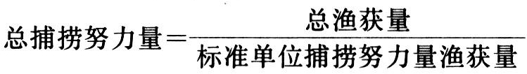 由于捕捞方式的多样性,渔具和渔船性能的差异,往往需要对捕捞力量进行标准化,以便把各种类的捕捞努力量与某一标准单位相比较。如对某一渔业的总捕捞努力量可用下式计算: