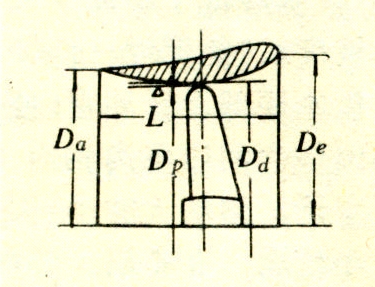 导管的主要几何基数见图。①长径比L/D:对低速重载的拖网渔船以采用较大的长径比(0.8~1)为好,但一般不大于1。否则导管摩擦阻力引起的效率损失将大于导管的效率收益。②导管的扩张系数D/D:一般在1.0~1.28范围内。低速重载的拖网工况,以1.0~1.15较有利。扩张系数值过大时,会降低推进效率。③导管的收缩系数D/D要大于扩张系数,一般在1.2~1.35的范围内。④导管内壁与螺旋桨叶梢的间隙越小越好。但是考虑到尾轴承的磨损和施工误差等因素,桨叶叶梢的间隙也不能过分小,一般⊿=0.005D(D为螺旋桨直径)。