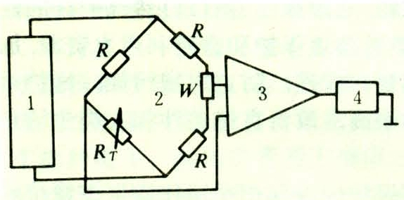 采用热敏电阻或集成电路的温度传感器。原理是利用它们在不同温度下呈现不同的阻值或电势的特性,把它作为测量电桥的一个桥臂(图1)。当检测温度为0℃时调至电桥输出平衡当感受其他温度时电桥输出发生偏移此差值经电子放大后指示出相应的温度值。通常,测量范围为0~50℃,误差小于±0.5℃。具有控制功能的温控仪误差小于±1℃。