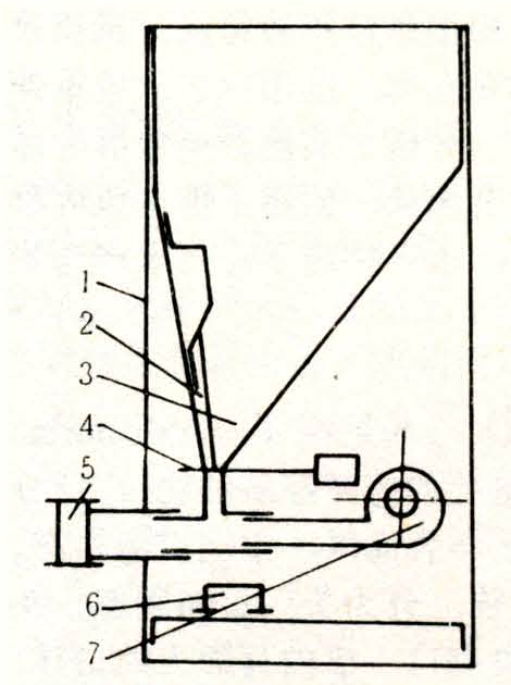 主要用于向养殖水面投撒颗粒饲料,有的也可用于喷撒粉状饲料。根据动力的不同,可分成机动投饲机和鱼动投饲机。机动投饲机多数以电动机为动力源。它主要由料斗、给料机构、投料机构、定时器等组成(图2)。为防止料斗中饲料结拱影响投饲精度,有的在料斗中还加设破拱机构。设备可根据养殖对象的种类、生长期和气候条件、饲料性质以及养殖模式等不同而改变投饲周期和投饲量,可较大幅度减少单位鱼产量的饲料消耗,减轻水质污染,还可减轻工作人员的劳动强度,尤其适用于高密度、高产出的封闭式循环水养殖场。其工作原理为:料斗中的颗粒饲料在给粒机构的带动下,定量落入投料机构内,在风力或机械力推动下撒入水中。定时器主要由脉冲发生器、分频器、记数器、预置电路、符合电路、控制电路、驱动电路组成。脉冲发生器产生频标信号,通过分频变成一种或几种时标信号,并送入记数器。将选定的投饲周期以数字形式加入预置电路,然后在符合电路中对由记数器送入的信号作比较。记数器送入的数字与预置数字相符时,符合电路立刻向控制电路输出符合信号,触发驱动电路带动给料机构动作。只要改变加入预置电路的数字,就可改变动作的周期和投饲量。鱼动投饲机属于被动型投饲机,投饲所需动力依靠鱼类在游动中或争食饲料时产生的水体波浪。结构比较简单,一般由料斗、挡料器、万向节和料板组成。当料板静止时,挡料板与料斗落料口之间距离各处相等,并正好可阻止颗粒饲料通过。当鱼类游进料板,带动料板运动时,挡料板也将产生与料板运动轨迹相似的运动,造成落料口和挡料板之间的距离变化,距离增大处,饲料即可漏下落入鱼池。这种设备仅适用于贪食性鱼类。在使用初期,尚需对养殖对象进行驯化,否则会影响效果。