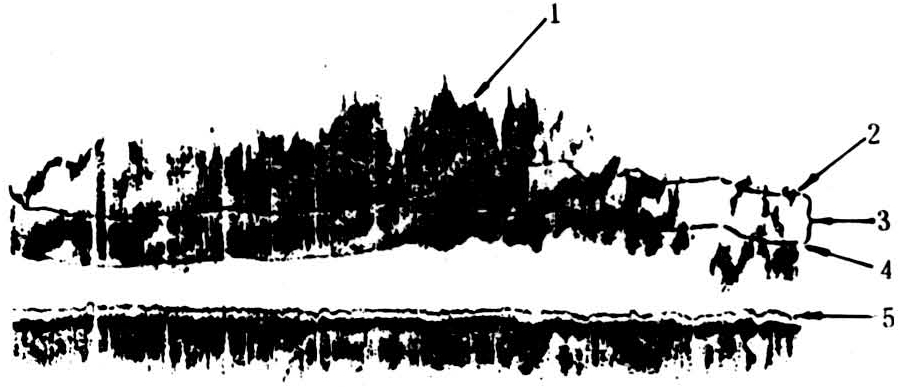 利用超声波在水中传播过程中遇到障碍物产生回波的原理,对水下目标进行搜索和判别,以发现和识别鱼群、估算群体大小和数量,对鱼群进行定位和跟踪等,是目前捕捞作业侦察中最主要的方法,并且开始成为资源研究的重要手段之一。主要使用水声探鱼仪器,包括垂直探鱼仪、渔用声纳、网位仪、声纳标志器和探鱼一积分装置等。①垂直探鱼仪:最早应用的水声探鱼仪器,主要用于探测渔船下方的鱼群,在底拖网中仍被广泛使用。②渔用声纳:在中层拖网和围网作业中,渔用声纳(水平探鱼仪)和各种网位仪已被采用,使水声侦察特别是鱼群定位跟踪技术进入更为完善的阶段。渔用声纳能以不同的俯角探测渔船周围的鱼群。现代渔用声纳的有效搜索距离可达5000米。③网位仪:不但可以测定渔具与鱼群的相对位置,提供渔具作业的有关参数,如网口高度、网板间距等,还能与探鱼仪配合使用(见图)。④声纳标志器:用于声纳标志放流。无须再度捕获,即可用声纳接收器监测带标志的鱼的位置甚至游动方向,研究鱼类洄游规律、行动甚至跟踪鱼群。小型声纳标志器的长度(包括电源在内)仅40毫米,直径仅6毫米。⑤探鱼一积分装置:为鱼类种群的定量侦察提供了一种新方法。回波积分装置将经过目标距离增益补偿的鱼群回波信号在垂直(全水层或分水层)及水平两个方向上先后进行积分,再根据积分总量与鱼群实际数量之间的相关关系估算群体数量。