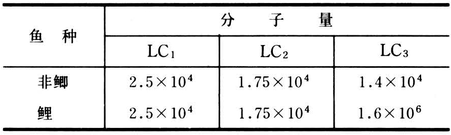 表2 几种鱼的肌球蛋白轻链L1、L2、L3分子量