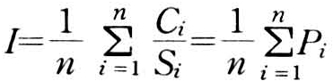 式中 只为某种污染物的相对污染值:Ci为某种污染物的实测浓度值;Si为某种污染物的评价标准值:P为某种污染物的污染指数;n为某种污染物的实测次数。
