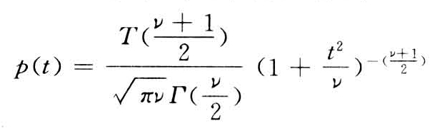 ,它服从自由度v=n-1的t分布,其密度函数为: