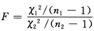 分别为自由度v1=n1-1和v2=n2-1的χ2统计量,这两个χ2分别除以各自的自由度后的比值定义为F,即