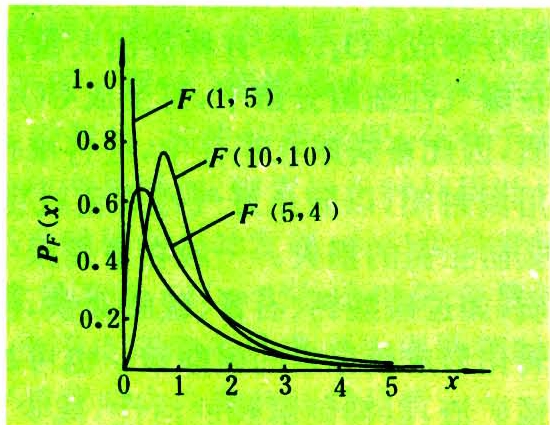 式中 v1和v2分别为F的分子S1 2和分母S2 2的自由度,是p(F)的两个参数。F分布的定义域(0,∞),F分布曲线是随v1和v2不同而异的一组曲线,通常是偏斜的(见图)。■