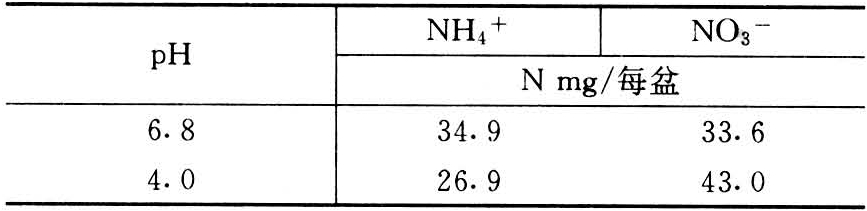 由于NH4 +-N的吸收与H+的释放是同时进行的,植物吸收NH4 +量和放出的H+量以摩尔(mol)计算大体相等。因此植物利用NH4 +-N营养时,外部介质pH值则明显下降。