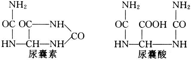 根系吸收的氮通过蒸腾作用由木质部输送到地上部器官,进行长距离运输。木质部汁液中氮的形态决定于吸收的氮源和根系的代谢作用。植物吸收的NH4-N,绝大部分在根系中同化为氨基酸,并以氨基酸、酰胺的形式向上运输。从根系通过木质部液流运往茎部的主要有机化合物随植物种类不同而有很大差异。在许多植物中,木质部运输的氮化合物以谷氨酰胺和天门冬酰胺为主(如小麦、大麦、黑麦、玉米和向日葵等);苹果木质部中是以天门冬酰胺和精氨酸形态运输氮。在结瘤的豆科植物中,木质部蒸腾流从根瘤输入含氮化合物特别多,这是由根瘤中固氮细菌活动所产生。某些热带豆科植物如豇豆和大豆中主要运输的氮化合物为酰脲(尿囊酸和尿囊素,两者均为4N∶4C比例),其化学式如下。
