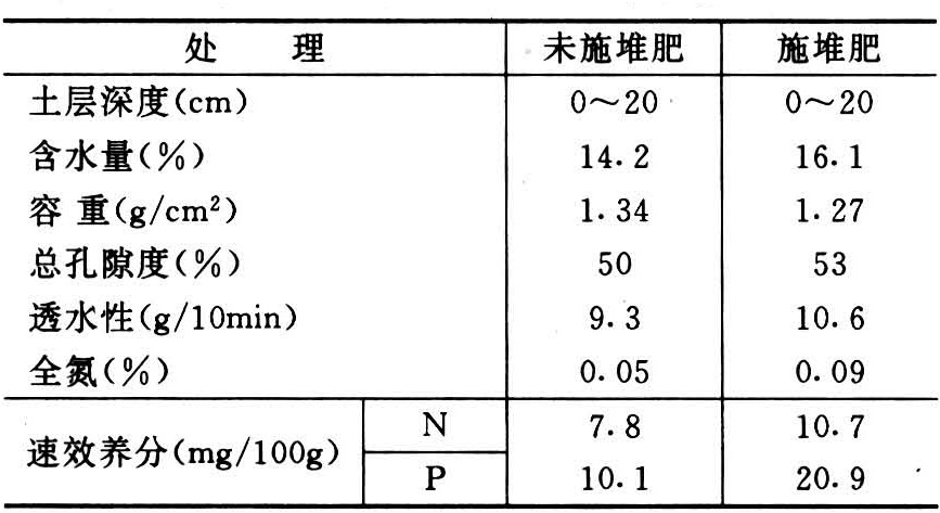 在砂性土壤或在生长期较长的作物上施用,宜用半腐熟堆肥;在粘质土壤或在干旱低温,作物生长期短的等宜用腐熟较好的堆肥。据研究在粘质黄土上连续3年施用垃圾堆肥,土壤的物理性质及养分含量均有显著的改善(表2),长期施用堆肥,对建设旱涝保收,高产稳产的农田具有良好的作用。