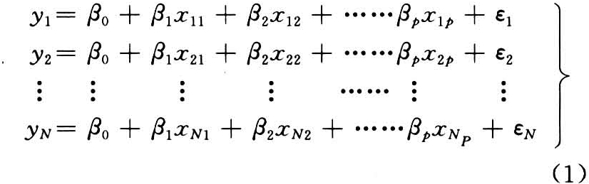 式(1)的多元线性回归模型为: