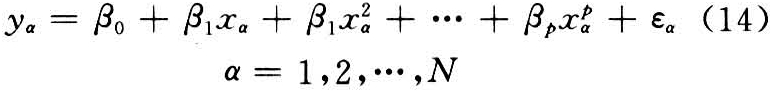 ,并把各次项视作一个因素,即把xα水平时的观察值yα视作xα1,xα2,…,xαp的多元线性回归,则式(14)即可转化为式(2)的多元线性回归模型,并用式(6)的方法求得各项参数。肥料试验中一般用二次多项式及三次多项式回归模型的回归方程