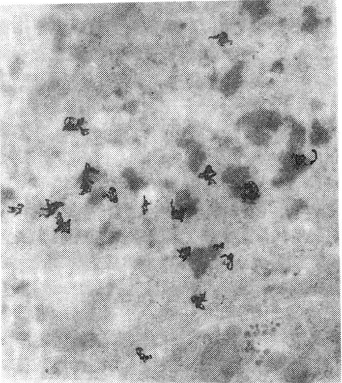 以后,将照相乳胶显影、定影、水洗和晾干。这种放射自显影用来观察放射性物质在植株器官、组织、土层中的分布情况(图1)。所用的照相材料还可以是幻灯片、电影正片、乳胶干板等。用D-19b显影2分钟左右