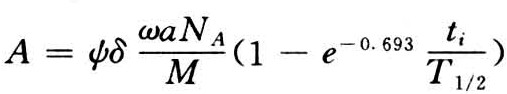 一定能量的中子、质子、α粒子、γ光子等照射(轰击)靶核(待分析样本)时,可引起核反应。反应过程为:入射粒子+靶核→复合核→剩余核+发射粒子。其剩余核是一个新核,可以是稳定性同位素,也可以是放射性同位素。当用一定能量的特定粒子照射样本时,使待分析元素中某一稳定性同位素经核反应产生放射性同位素。这种放射性同位素的放射性活度与待测元素的量成正比。可按下式计算: