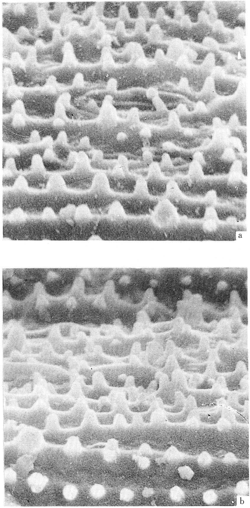 图6 水稻叶表面在不同钾水平处理下,叶片硅质及栓质化乳突情况