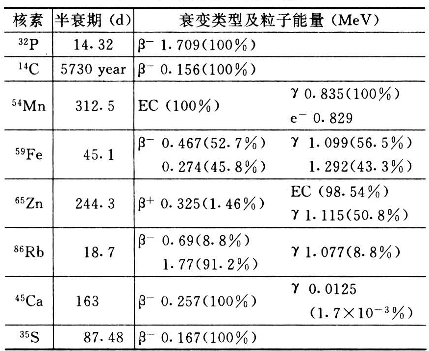 的32P对作物不产生任何危害。 农化常用放射性核素特征 示踪磷肥标记一种方法是在制备标记肥料时,把32P结合到其中一种成分中去,如可以在制备过磷酸钙时,在硫酸中加入32P标记的磷酸盐,用这种硫酸处理的磷矿粉制得的过磷酸钙除有正常结构外