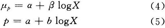 有时生长曲线呈不对称分布的S形,常对处理变量X取对数变换,则式(2)、式(3)成式(4)、式(5)形式,而成为正态曲线: