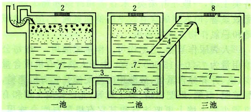 三格化粪池剖面示意图