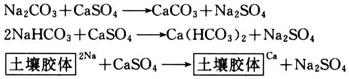 所生成的硫酸钠为水溶性中性盐,它可随雨水或灌溉水从耕作层中逐渐淋失。碱性土施用石膏后,可降低其强碱性反应。同时也改变了碱土胶体性质,即将高度分散的钠胶体转变为不易分散的钙胶体,使土壤结构和通透性等理化性质得到改善,有利于作物生长和产量的提高。当石膏施于淹水土壤时,氧化态的SO4 2-可由硫酸还原细菌的作用还原成H2S,它或与铁等金属反应生成硫化物沉淀,或逸至地面空气中,或积累于土壤中,易对作物产生毒害。