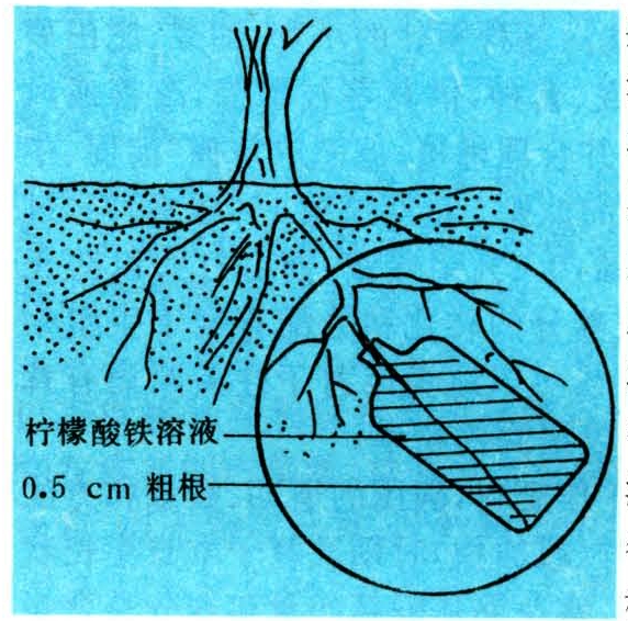 柠檬酸铁的根际埋瓶施肥示意图