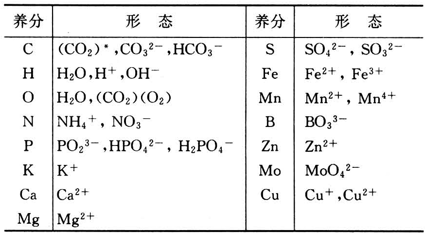 土壤中养分可被作物吸收的化学形态主要是离子形态(表)。而植物吸收养分最主要的来源是土壤溶液。接触交换所能供应的养分,在数量上是微不足道的。