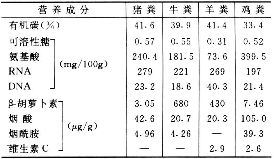 表2 几种畜、禽粪的有机营养成分