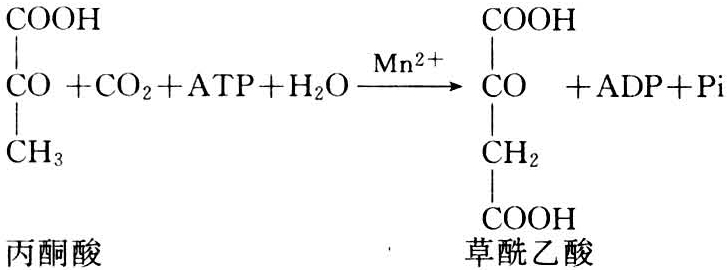 丙酮酸羧化酶催化丙酮酸羧化反应形成草酰乙酸,它可在根内发生氨基化作用,形成天门冬氨酸。所形成的天冬氨酸可从根运往地上部,参与地上部的代谢过程,亦可在根内参与代谢过程。例如发生转氨(基)作用,形成其它氨基酸,或参与蛋白质合成等。