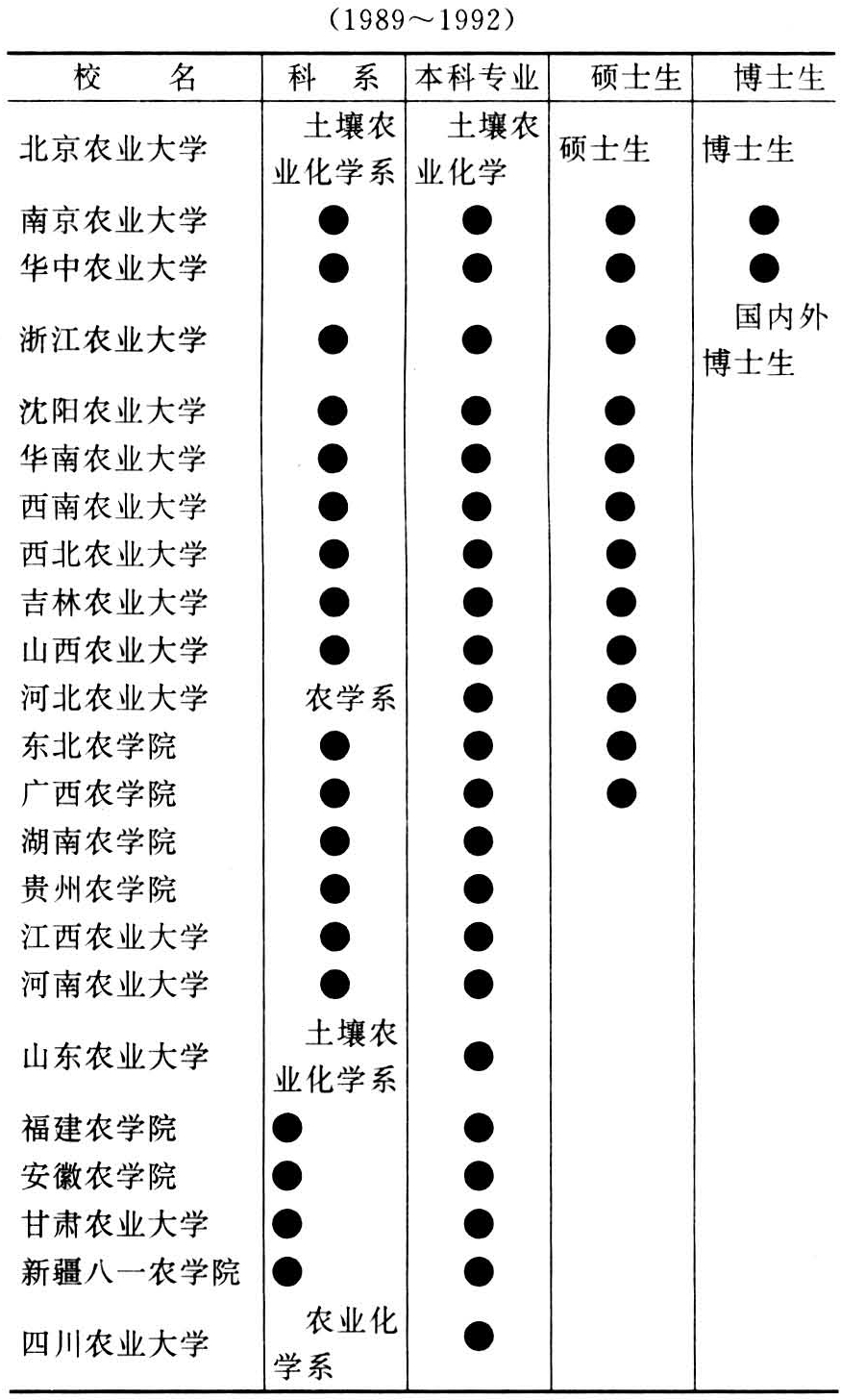 中国培养高等农业化学人才的农业院校一览表