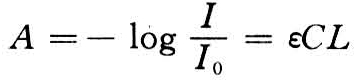 式中 A为吸光度;I0为入射光强度;I为透射光强度;L为光线通过有色溶液的液层厚度(cm);C为溶液中有色物质的浓度(摩尔/升);ε为摩尔吸光系数(或消光系数),单位为升·摩尔-1·厘米-1。摩尔吸光系数是每种吸光物质在一定波长下的特征常数,可用来衡量物质吸收光的灵敏度,ε值越大,该物质对光的吸收越强。