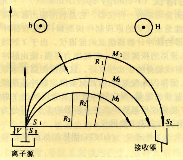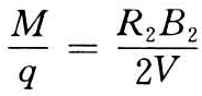 式中 M为离子质量;q为离子电荷(N2离子的电荷为1);B为磁感应强度;V为电场电压;R为离子运动的半径。