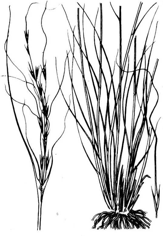 秆直立,高50~80厘米。叶舌膜质,长1.5~3毫米;叶纵卷成细条形,茎生叶长20~30厘米,基生叶长达40厘米。圆锥花序基部包于叶鞘内,长20~40厘米,分枝细弱,2~4枝簇生。小穗稀疏,含1小花。颖披针形,长23~30毫米,第一颖略长,3脉,第二颖5脉。外稃圆筒形,长12~14毫米,包卷着内稃,顶端关节处被短毛,基盘尖锐,密生柔毛,芒二回膝曲,粗糙无毛,第一芒柱扭转,长3~4厘米,第二芒柱长1.5~2厘米,芒针丝状卷曲,长8~13厘米(图)。