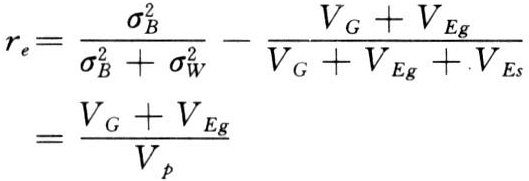 已知Vp=VG+VEg+VEs(见数量遗传学),式中,VEg为一般环境方差(或持久性环境方差),是由时间上持久的或空间上非局部的条件所造成的环境方差。VEs为特殊环境方差(或暂时性环境方差),是由暂时的或局部的条件所造成的环境方差。按方差的成因来剖分,个体间的方差组分,个体内度量间方差组分