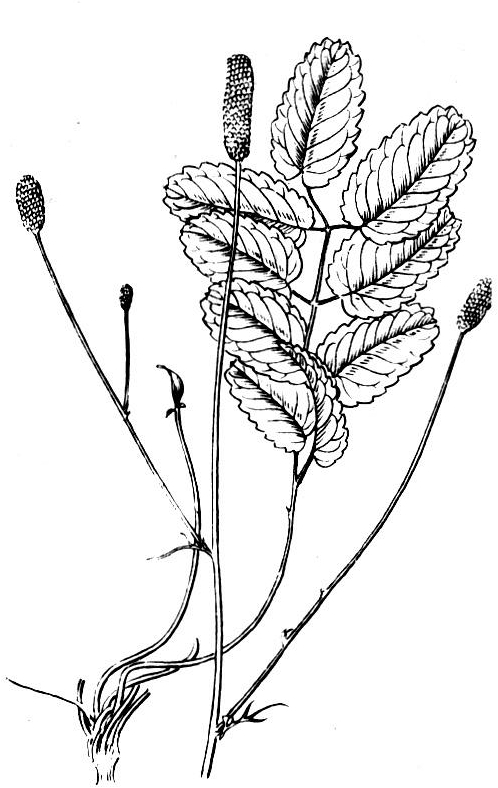 多年生,高达1米,无毛,根较粗壮,纺锤状。茎直立,上部多分枝。具根生莲座状叶。根生叶单数羽状复叶,有长柄,小叶5~15片,长圆状卵圆形,边缘有粗锯齿,表面绿色,背面淡绿色。茎生叶有托叶。花小而密集,形成数个穗状花序生于茎顶,头状或短圆柱状,紫红色或暗紫红色(图)。