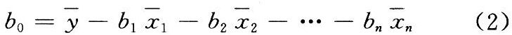 由解式(3)求得bi值代入式(2)求出b0,并建立多元线性回归方程。