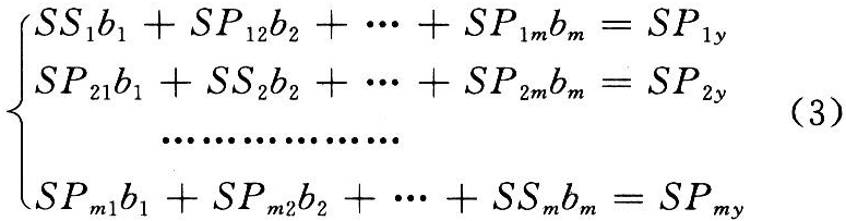 式中 SSi,SPij(i,j=1,2,…,m)为各自变量的平方和乘积和及其与依变量y的乘积和。