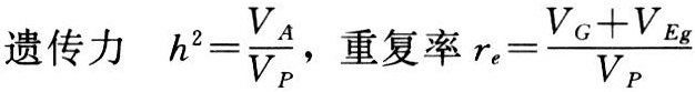 数量性状遗传的研究是以研究其变异为中心来进行的。研究变异的基本思想是把总的变异量剖分成变因不同的组分。群体某一数量性状的表型值P是遗传与环境共同作用的产物,可表示为P=G+E。式中G为遗传原因造成的值,称为遗传值,或基因型值;E为环境原因造成的值,称为环境偏差。于是按上述方差剖分的原理,就有,或写成VP=VG+VE。V常用来代表方差的原因组分。