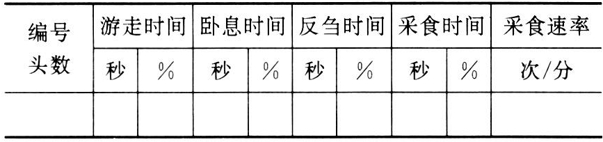 主要有:①仪器观测。利用一种振荡记录器,自动记录1~7天中,放牧动物的牧食、反刍时间。Stobbs袖珍自动仪可分别计数放牧动物的采食口数和反刍加咀嚼的口数,用一种装有食道瘘管的家畜及一定的描记装置,可测得动物的单口采食量。也可通过闭路电视系统进行记录和观察,这种系统由高光敏照相机(组)连在照相机上的变相录象仪上,电视屏幕用直接连在计算机输入系统上的电子读数装置等组成。这种系统的优点在于省工省力,提高检测速度,灵活性大,可进行较大范围的畜群观察,反复使用,长期保存,还能进行夜间观察。缺点是耗资较大,视野受局限,会产生遗漏。还可采用无线电遥测技术,由一个活动探测器和发射体两部分组成,悬挂在每头受测动物(指大动物)颈上,从探测器发出的信号被频道接收机接受后,由活动记录器和十进制计数器记下,这种装置能够分别记录来自18头牛的信号。它的优点是可长期连续记录,不影响动物自由采食,效率高,应用范围广。使用时要注意防止来自具有相同波长的其他发射机的干扰,并定期调换电池组或在晶体管探测器上安装节能电路。②人工观测。观测时每四人一组,其中一人为观察员,须在离畜群30~50米处或以望远镜在更远处观察,以免惊扰畜群,如与牧工同行,较便于就近观测,观察员的任务是观察家畜的各项动作,并数其采食口数、发出命令。记录开始时喊“开始”,结束时喊“完了”;采食时喊“吃”,游走时喊“走”,立即报告采食口数。如采食以后是卧息,则喊“卧”,当观察同一家畜有困难时即喊“换”。其余三人均为记录员,应在距离观察员较远处。如在下风方向需在50米以外,在上风方向时可以稍近,以便听清楚观察员口令为限。第一记录员负责记录卧息时间兼记每一家畜的观测总时间。第二记录员负责记录采食时间。第三记录员负责记录反刍时间与采食口数。当观察完之后,将3个记录加以总结,记入表中。当各项观察不是同时进行,家畜编号不是同一号码时,可将家畜编号变为观察头数;当放牧分几段进行时,每段数字应分别统计填入表中。