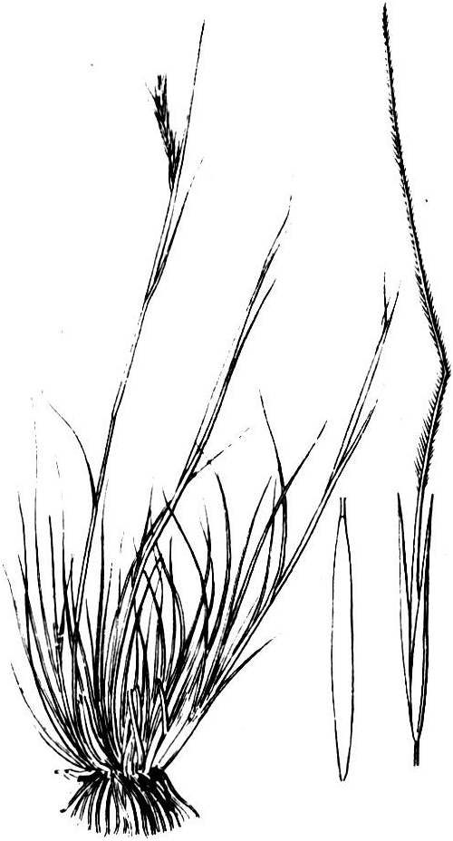 芒一回膝曲,芒柱扭转,光滑,长1.5厘米,芒针急折弯曲近呈直角,长4~6厘米,着生长3~5毫米的柔毛(图)。 戈壁针茅 分布地区为干旱区山地砾石质荒漠草原的建群种,也见于干草原区石质丘陵的顶部。常与沙生针茅组成山地荒漠草原和山前平原荒漠草原。分布于中国内蒙古高原中西部、黄土高原、青藏高原、甘肃与新疆等地,蒙古也有分布。