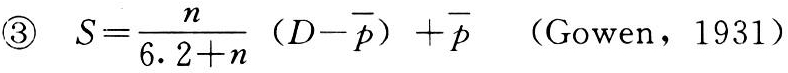 式中 S和D的定义如前;n为母亲组数;为群体平均数。