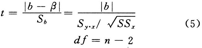 式中 β为总体回归系数;Sb为回归系数标准误;Sy.x为y依x的离回归标准误(估计误标准误),