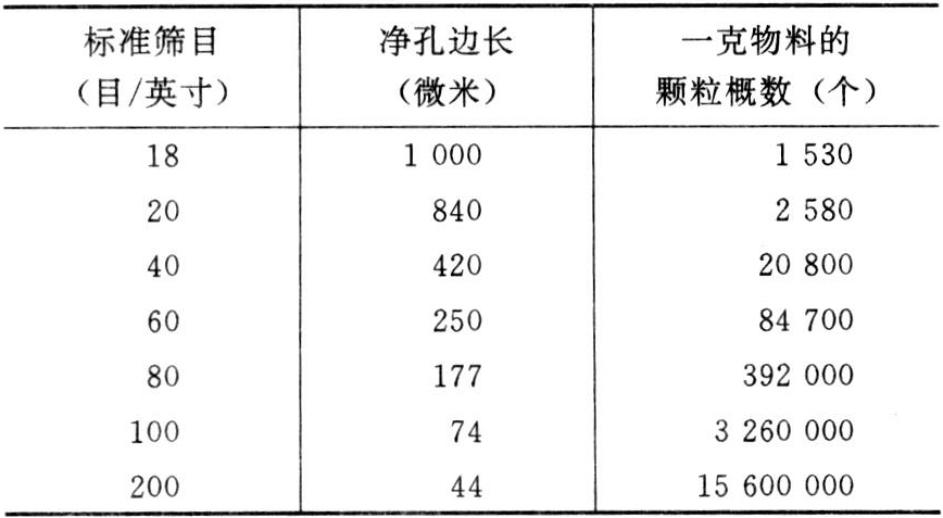 中华人民共和国国家标准《配合饲料粉碎粒度测定方法》规定标准编织筛的规格用筛目及净孔边长均可。粉碎粒度与标准编织筛的净孔边长呈反比(表)。