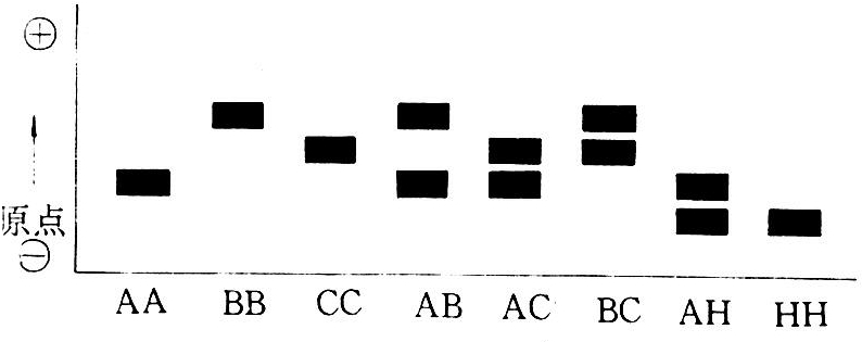 蛋白质及酶的分子变异体,在同一畜群中有两种或两种以上变异体并存,而稀少的变异体的等位基因频率超过1%的现象。这些变异体是用生物化学方法,主要用电泳技术加以检定,多数情况下,是用淀粉或聚丙烯酰胺凝胶作为支持介质的电泳方法。电泳分离是根据不同蛋白及酶具有不同的电荷这一事实,将血液放在支持介质上,并置于有相应缓冲液的电场中,蛋白质则向阳极或阴极移动,移动的速度受到本身所带的电荷和电场的强度以及分子的大小和形状影响,因此在电泳移动时即可分离开。用相应的染色剂染色后,即在凝胶上显示出不同区带,这样,分子的变异体即可鉴别出来。这些变异体是受共显性等位基因所控制,因此表现型和基因型是一致的。到目前为止已经在各类家畜的红细胞内部、白细胞内部以及血浆中的多数蛋白和酶发现具有多态性。