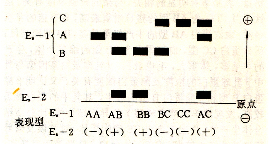 图5 鸡血浆酯酶ES-1,ES-2电泳区带
