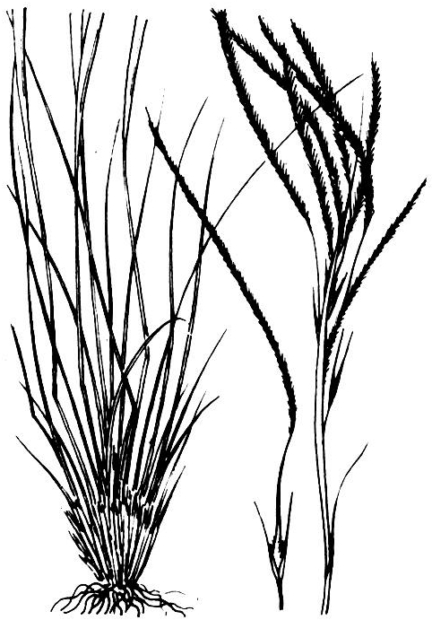 秆斜升或直立,基部膝曲,高(10)20~40厘米。叶舌膜质,长1毫米,边缘具长纤毛,叶卷成针形,茎生叶长2~4厘米,基生叶长达20厘米。圆锥花序包于膨大的顶生叶鞘内,长5~9厘米,分枝细弱,单生或孪生。小穗稀疏,含1小花。颖狭披针形,长2.5~3.5厘米,顶端成丝状尾尖,二颖近等长,外稃圆筒形,长10毫米,包卷着内稃,顶端关节处光滑或具稀毛。基盘尖锐,密被柔毛,芒一回膝曲,芒柱扭转,光滑,长2~2.5厘米,芒针弧状弯曲,长10~13厘米,着生3~6厘米长的柔毛(图)。