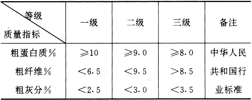中华人民共和国专业标准《粟(谷子)》中将商品粟分为粳粟、糯粟及混合粟三类。按容重分三级,粳粟与糯粟均按容重分级,两者级别相差一个档次。而中华人民共和国行业标准《饲料用粟》中则将饲料用粟以粗蛋白质、粗纤维及粗灰分为质量指标,按含量分为三级,各项质量指标均以86.5%干物质为基础。三项质量指标必须全部符合相应等级的规定,二级饲用粟为中等质量指标,低于三级者为等外品(表)。