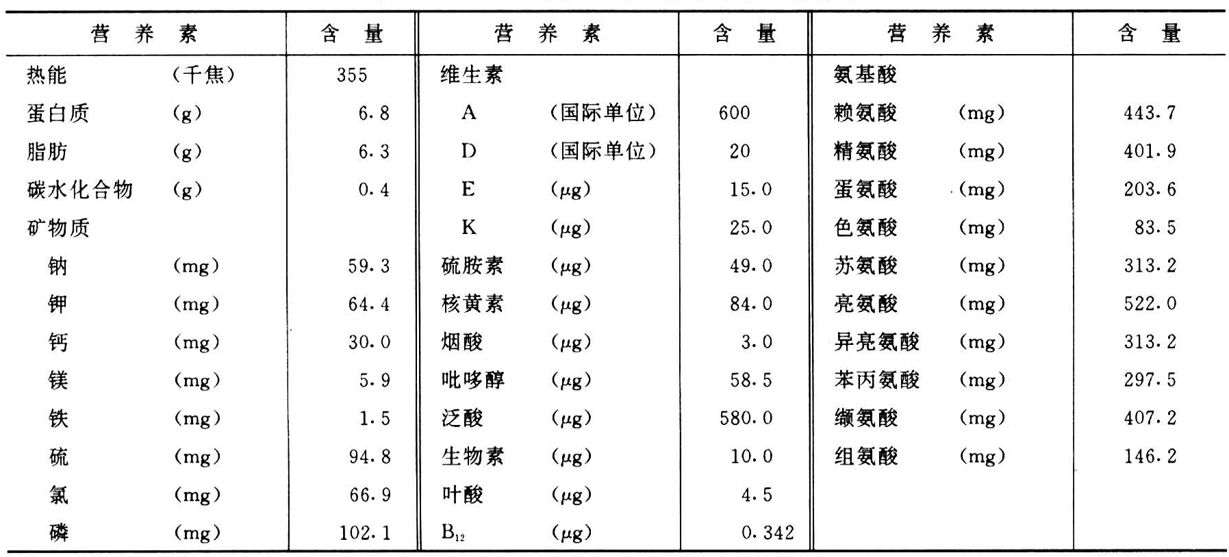 禽肉与禽蛋营养丰富,为人类的优良食品。蛋中含有丰富的蛋白质、维生素和矿物质(表1)。蛋的蛋白质容易消化,蛋的维生素D为仅次于鱼肝油的重要天然来源。