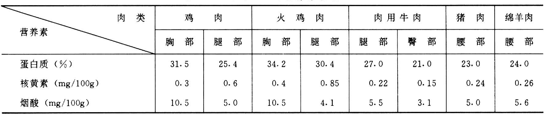 表3 几种重要动物性食品氮基酸含量比较(占总蛋白质含量的%)