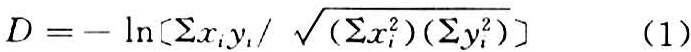 式中 D为遗传距离,ln为自然对数,xi、yi为两个群体第i种属性类别的分布频率。